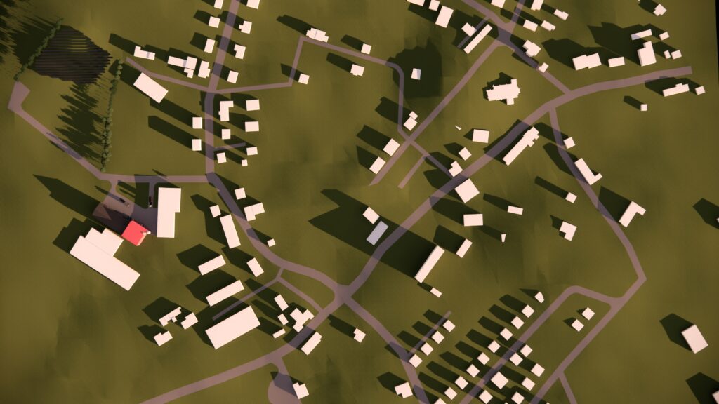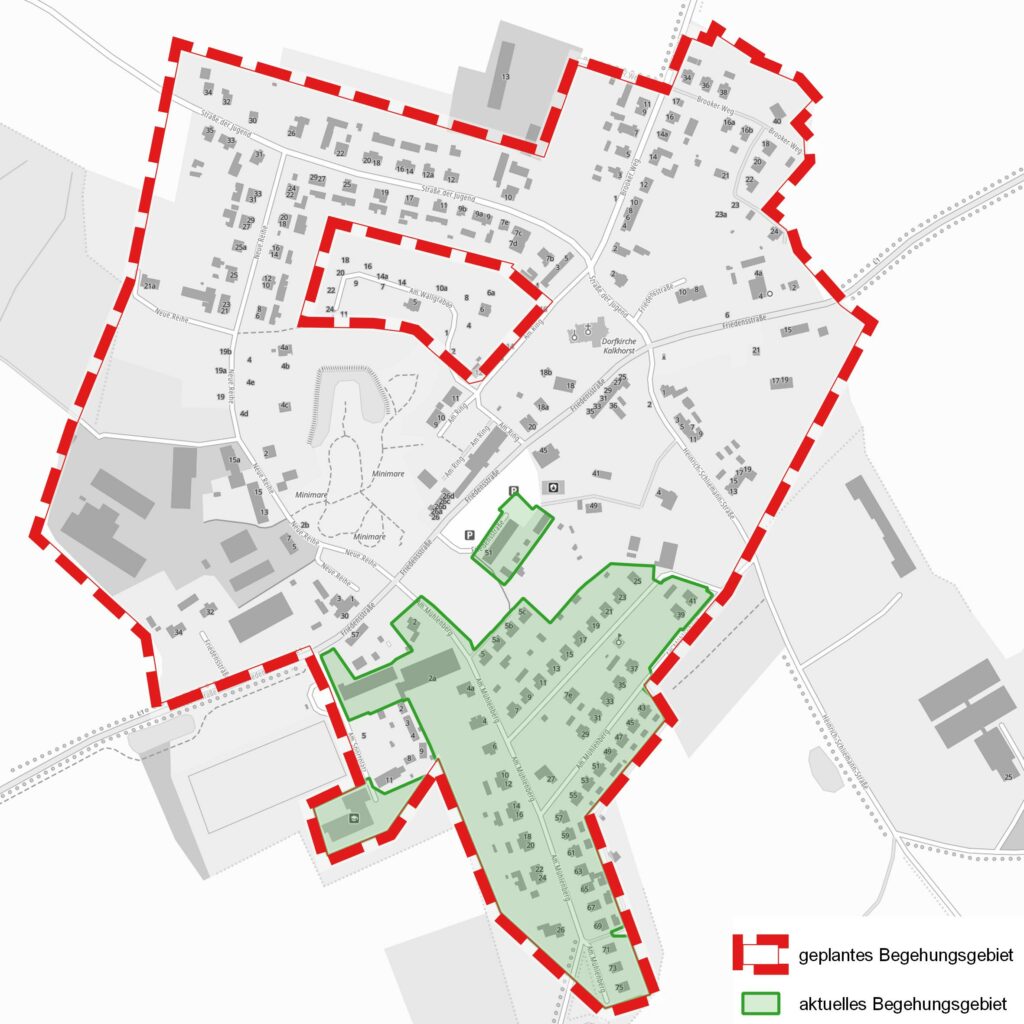 In einem ersten Schritt ist es geplant, das abgebildete Versorgungsgebiet mit Hilfe eines Biomassekessels (Hackschnitzel) zu versorgen. Zusätzlich ist eine Solarthermie-Freiflächenanlage zur Abdeckung der Grund- und Sommerlast eingeplant. Damit ergäbe sich die Möglichkeit, den Biomassekessel über die Sommermonate vollständig außer Betrieb zu nehmen. Eine entsprechende Solarthermieanlage wurde mit einer Kollektorfläche von 1.200 m2 konzipiert, wofür eine Grundstücksfläche von ca. 3.000 m2 benötigt würde. Als Standort für die Energiezentrale und die Freiflächensolaranlage wurden bisher verschiedene Standorte in Betracht gezogen.